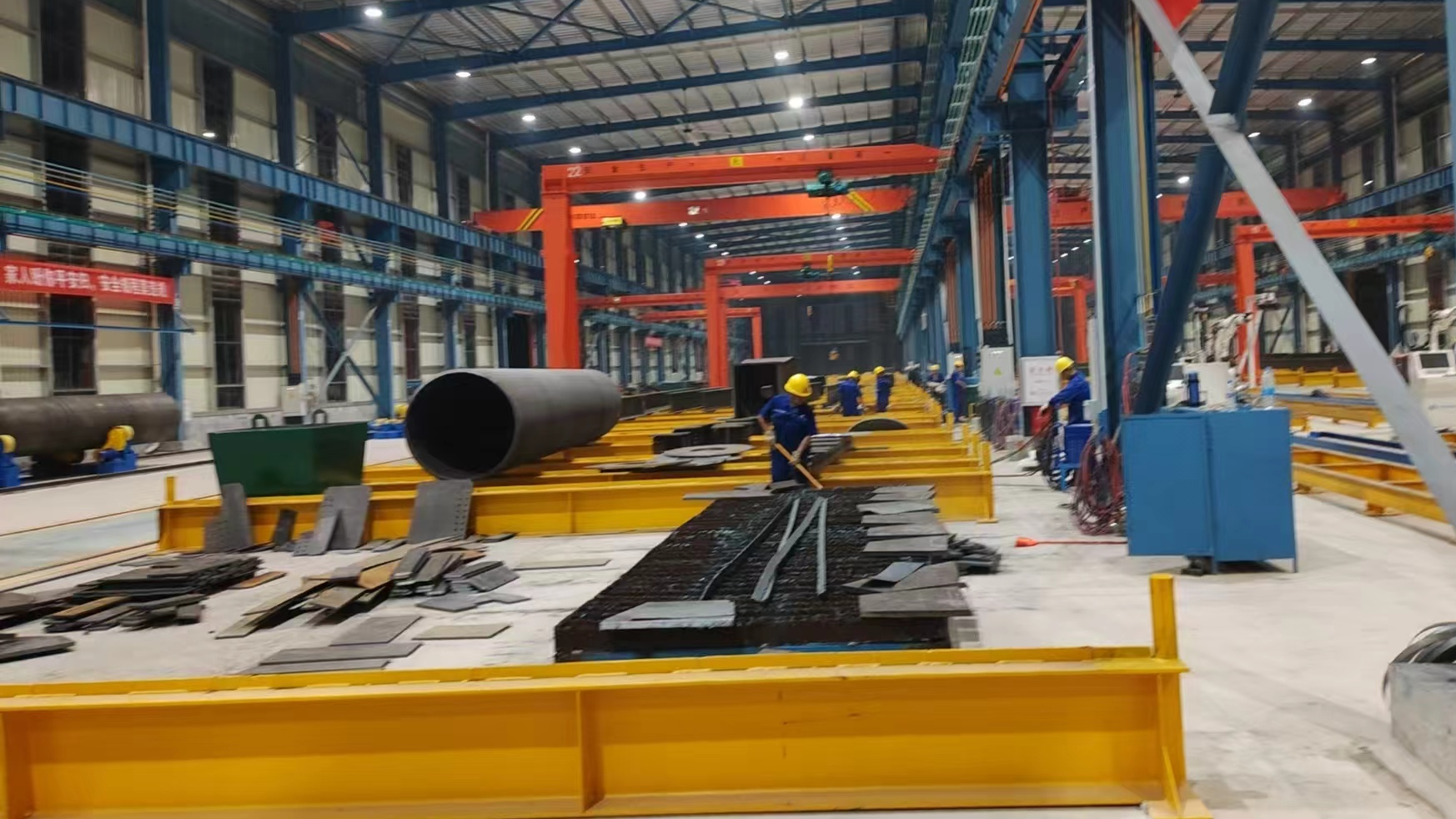 公司建設規模:廠區總占地面積68000平方米,總建筑面積47686.61平方米,其中加工車間建筑面積約40760.77平方米(一期24152.29平方米、二期16608.48平方米)、研發樓建筑面積約2175.18平方米,宿舍樓建筑面積4547.8平方米(一期2273.9平方米,二期2273.9平方米),室外堆場占地面積約10000平方米。配備各類鋼結構生產設備、5-50噸起重機、機器人焊接,以及氣站等配套附屬設施。