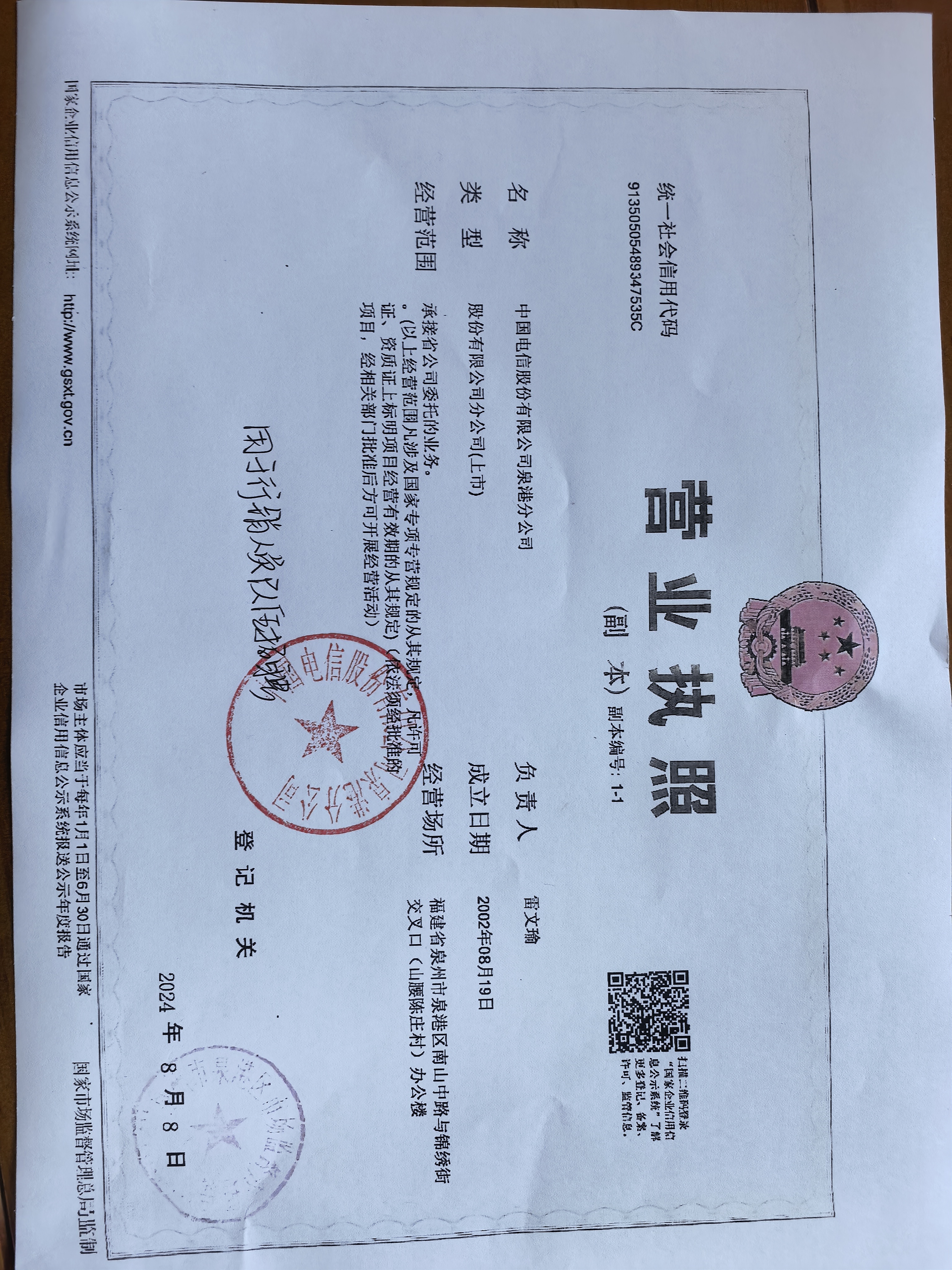 中國電信股份有限公司泉港分公司